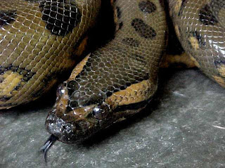 Anaconda is a large, non-venomous snake found in tropical South America. Although the name actually applies to a group of snakes, it is often used to refer only to one species in particular, the common or green anaconda, Eunectes murinus, which is one of the largest snakes in the world.